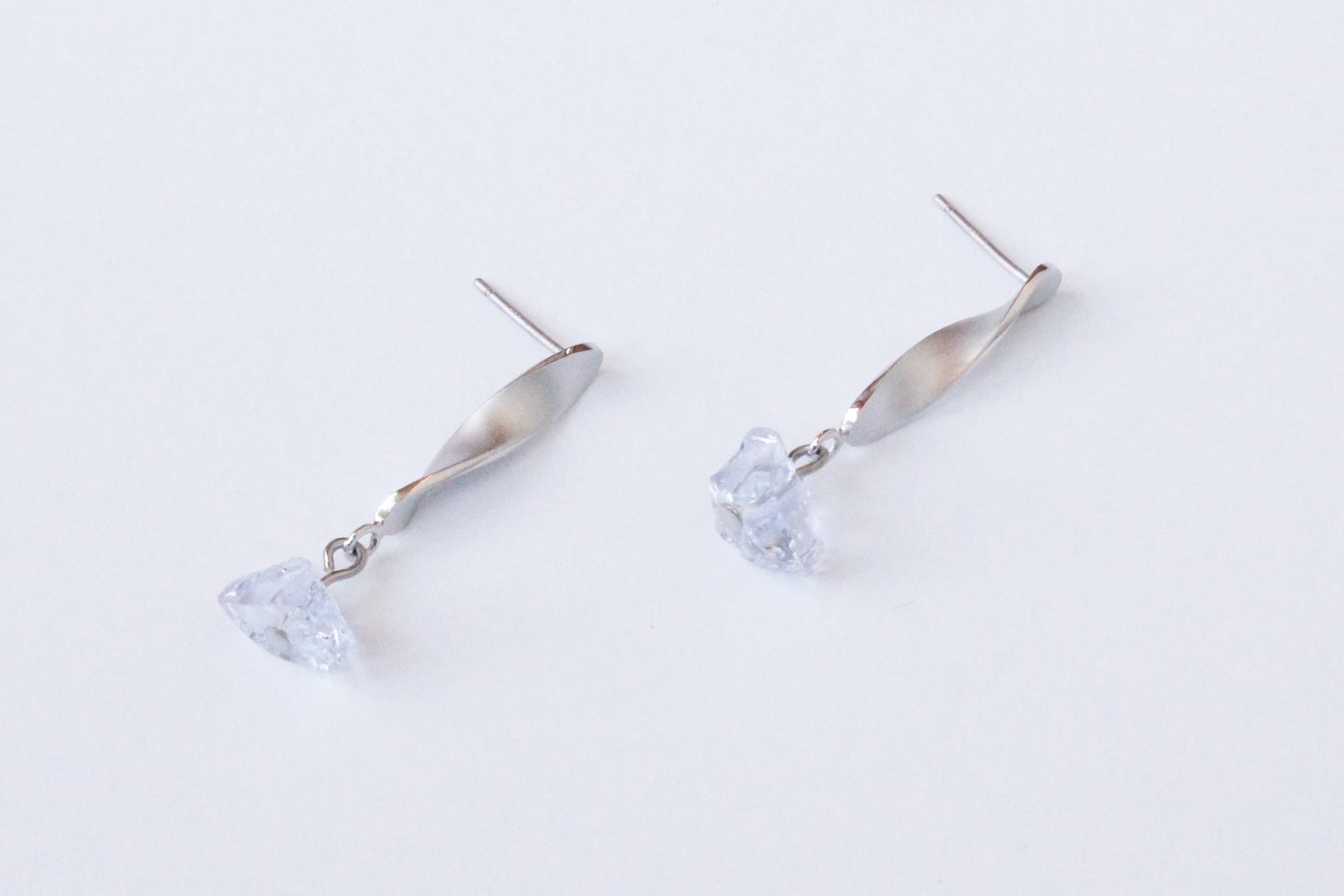 TONEは美しいひねりのある金属部分の先にさりげなくガラスパーツが揺れるデザインです。