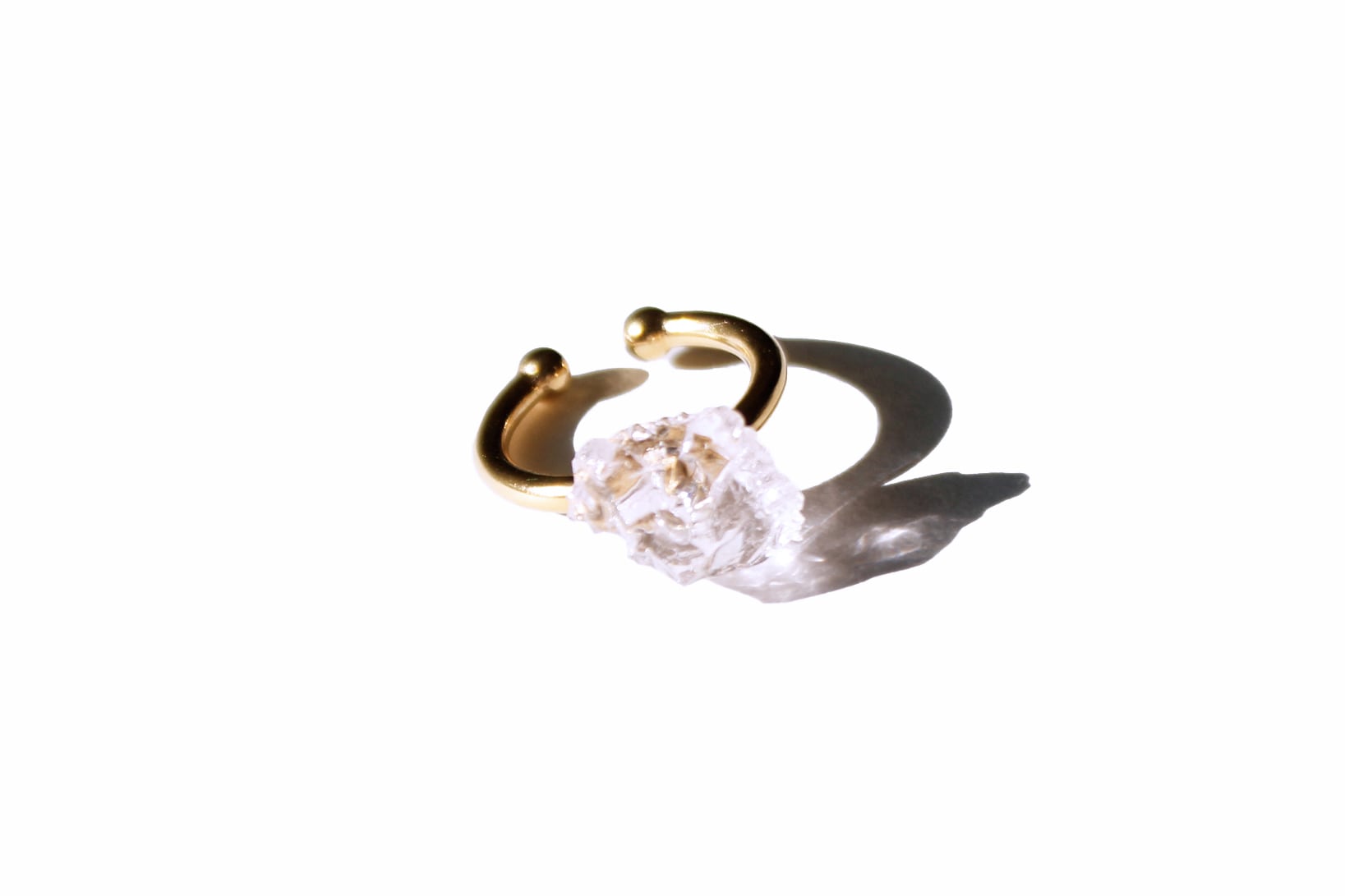 割れたガラスを使用したデザイン。その偶発性から生まれたそれぞれの形は唯一無二の独特の美しさを持ちます。割れたガラスを使用しデザイナーがジュエリーとして再構築する手順から「再生・生まれ変わり」をテーマとしています。