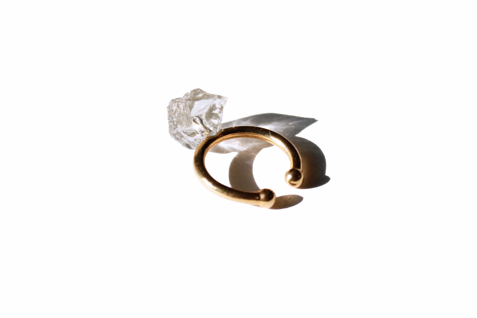 割れたガラスを使用したデザイン。その偶発性から生まれたそれぞれの形は唯一無二の独特の美しさを持ちます。割れたガラスを使用しデザイナーがジュエリーとして再構築する手順から「再生・生まれ変わり」をテーマとしています。