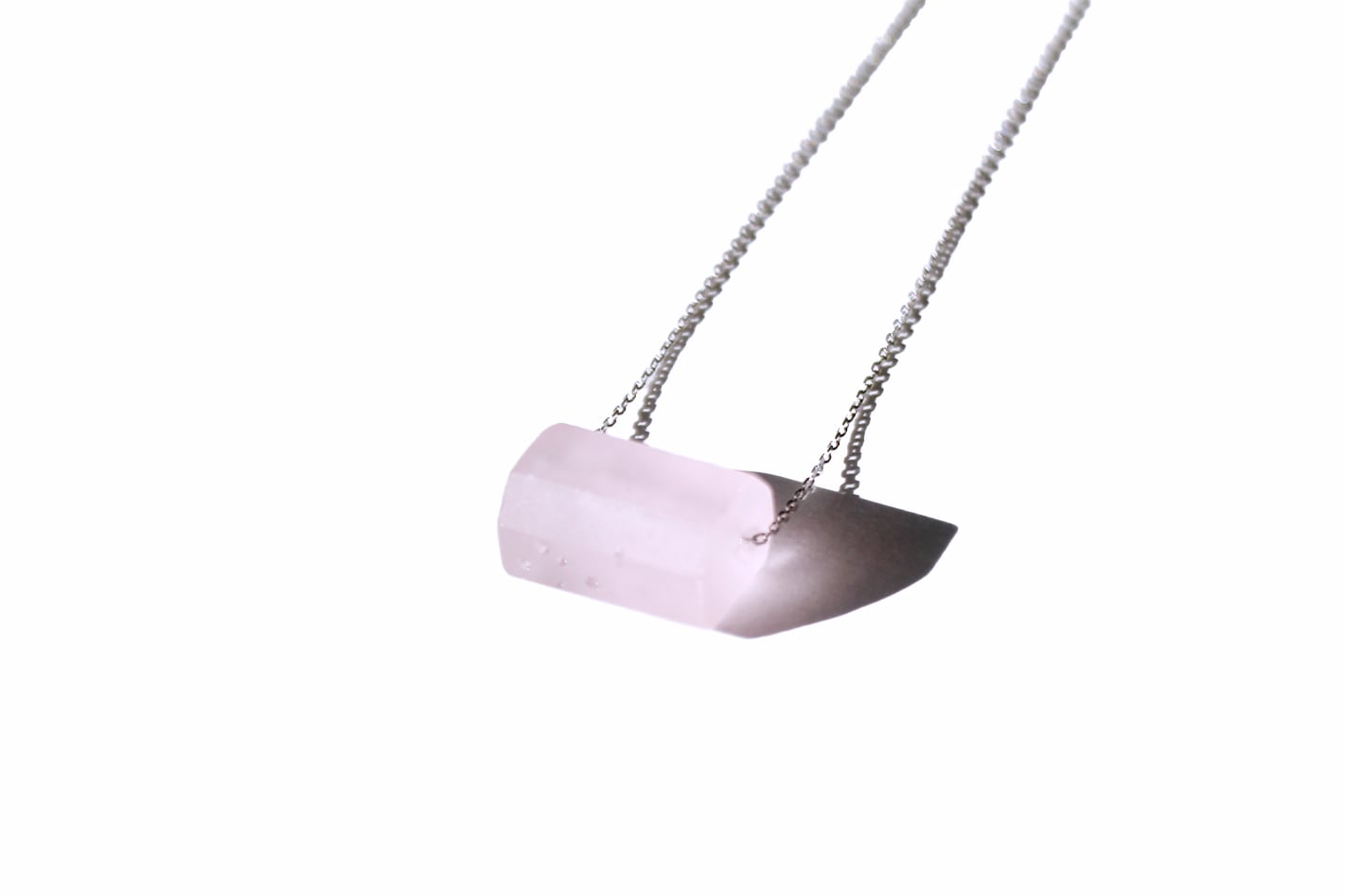 シンプルで飴のような形状のトップが特徴のデザインはどこか懐かしい感覚を呼び起こします。ガラスの重厚感と柔らかな色味は他の素材にはないガラスらしい美しさを感じられるネックレスです。