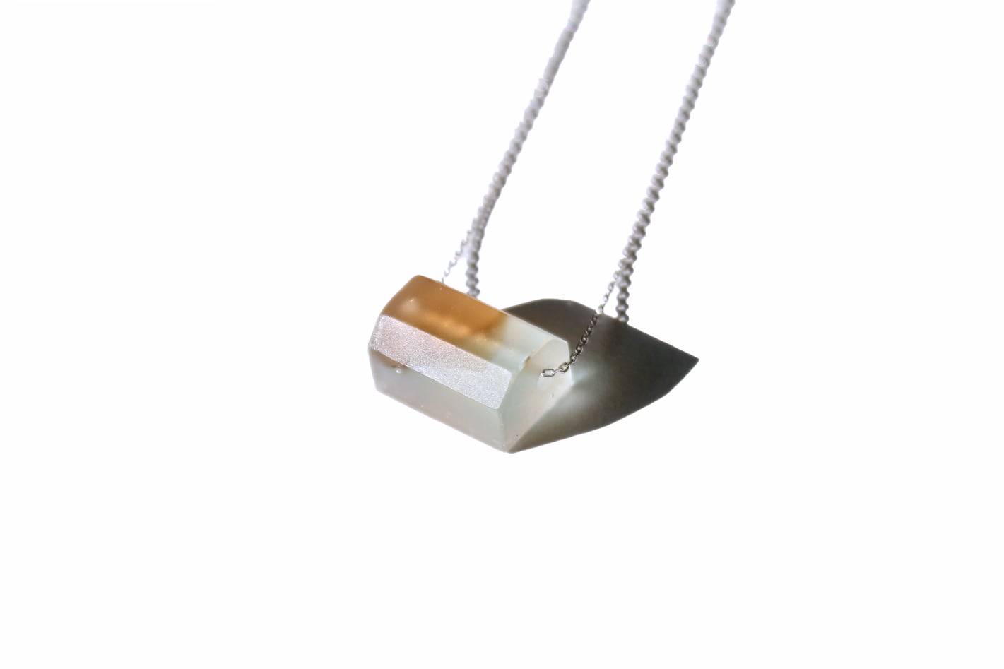 シンプルで飴のような形状のトップが特徴のデザインはどこか懐かしい感覚を呼び起こします。ガラスの重厚感と柔らかな色味は他の素材にはないガラスらしい美しさを感じられるネックレスです。