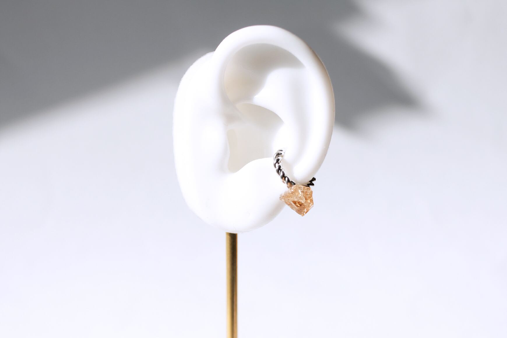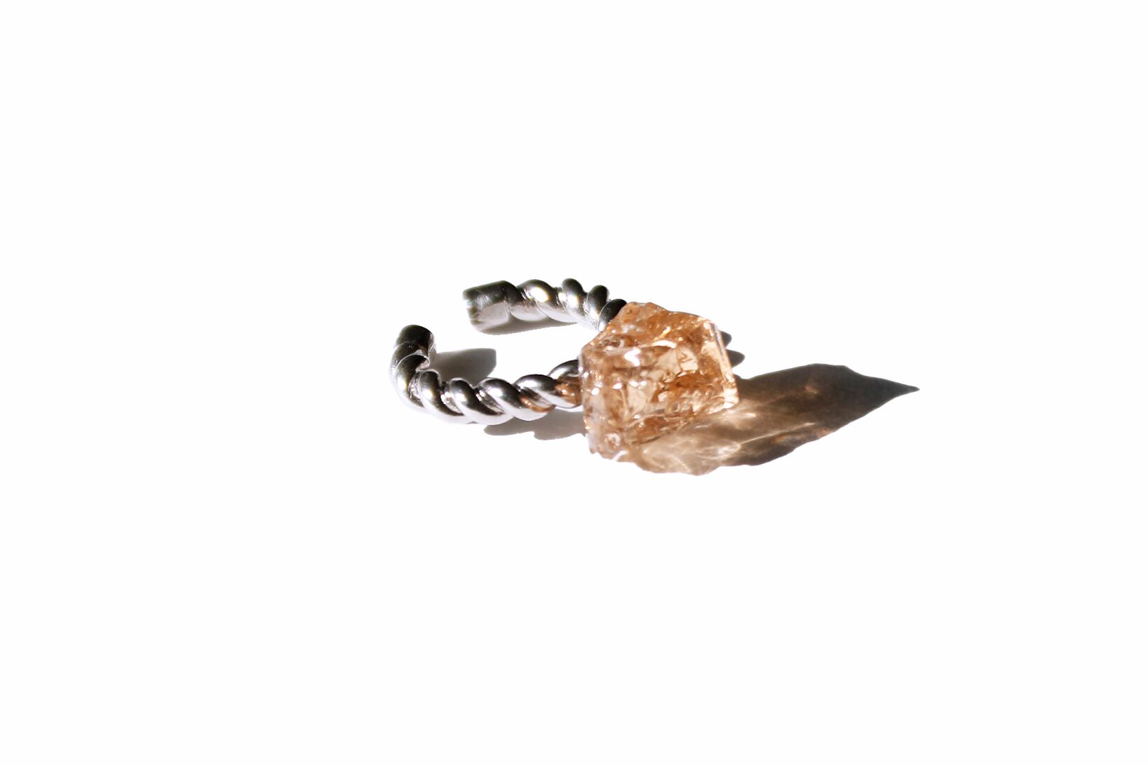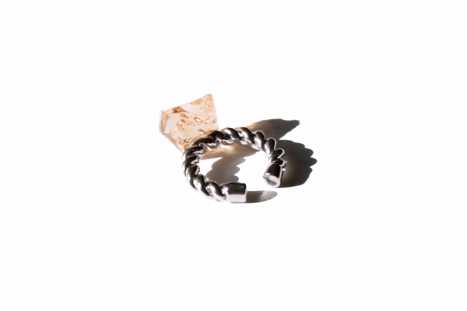 割れたガラスを使用したデザイン。その偶発性から生まれたそれぞれの形は唯一無二の独特の美しさを持ちます。割れたガラスを使用しデザイナーがジュエリーとして再構築する手順から「再生・生まれ変わり」をテーマとしています。